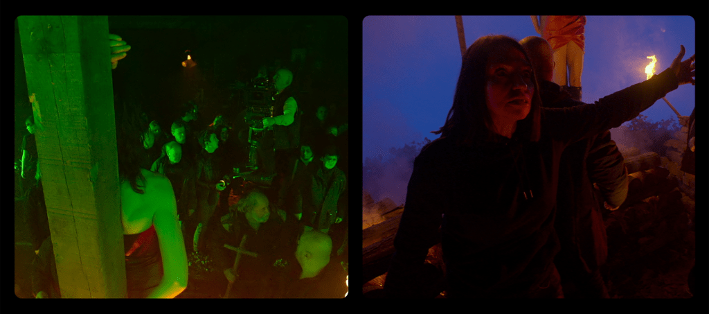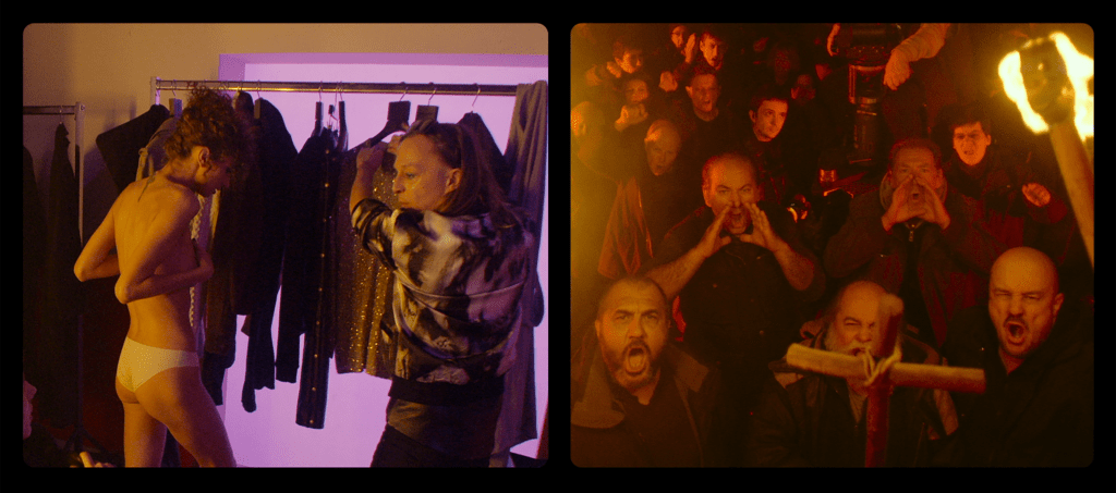 En leur donnant la possibilité d’incarner leur propres personnes, le film nous propulse dans une interstice du réel. Une faille de l’entre-monde, où l’on voit s’articuler la naissance d’une scène de triple crucifixion, mêlée aux flammes d’un bûcher, virant à l’incantation.