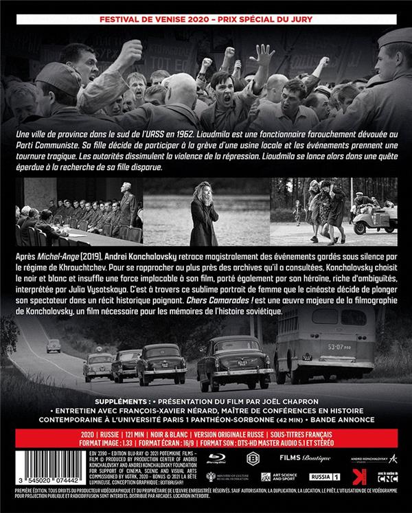 L’édition Blu-Ray de Chers Camarades ! est une vraie réussite offrant des conditions idéales de visionnage avec un master image extraordinaire et un master son décuplant le réalisme de l’oeuvre, nous portant au coeur du cadre de l’enfer du massacre de Novotcherkassk.