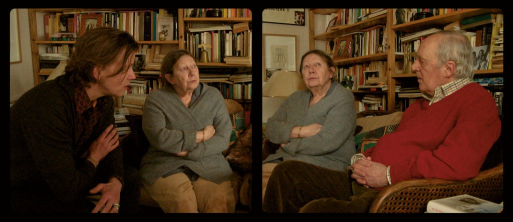 Les murs sont placardés de livres, de recherches et de souvenirs. Nous prenons plaisir à découvrir cette vie, ces photos mais aussi à partager les ouvrages que le cinéaste s’est amusé à mettre en évidence allant des recueils sur Dreyer aux anthologies sur le cinéma russe en passant par le spectre de Fritz Lang.