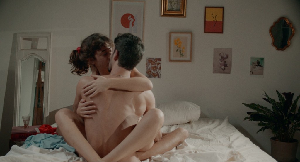 Dans ce maelstrom fait d’épuisement, d’ivresse, de rires, de cris et de soleil, à l’ombre, sous les arcades, la curieuse affiche d’All Eyes Off Me attire les regards, attire mon regard. Le spectre de Théo Et Hugo Dans Le Même Bateau s’immisce dans nos pensées, tout comme le cinéma de Gaspar Noé avec ce rouge viscéral et ce titre, All Eyes Off Me, jouant un duel prétentieux, mais alléchant, avec le tube international de 2Pac, All Eyes On Me, vient à décrocher la curiosité.