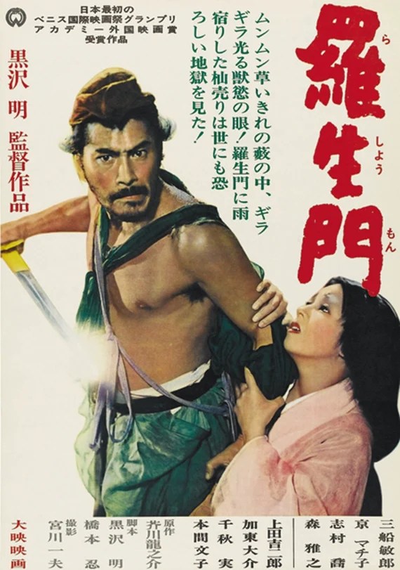 Synopsis : Pour se protéger d’une pluie diluvienne, trois hommes, un bûcheron, un bonze, un domestique se réfugient sous les ruines d’un vieux portique mal famé, Rash-O-Mon, dans l’antique Kyoto. Le bonze et le bûcheron font tour à tour le récit d’une aventure où ils avaient été cités comme témoin. Au total, quatre versions du même événement nous sont données…