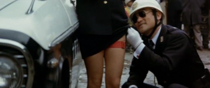 C’est alors le début d’une cavale hystérique mettant sur la route de Takashi toute une galerie de personnages tous plus dégénérés les uns que les autres. De la jeune Miki, aux pratiques douteuses, dont Takashi va s’amouracher au frère de Mitsuo réclamant son dû en passant par les agents de police plus préoccupés par la séduction, et possession de leur collègue policière, ou encore par le mérite de capturer l’ennemi public numéro 1, quitte à anéantir des quartiers entiers, les pulsions, désirs et orgueils se déchaînent.