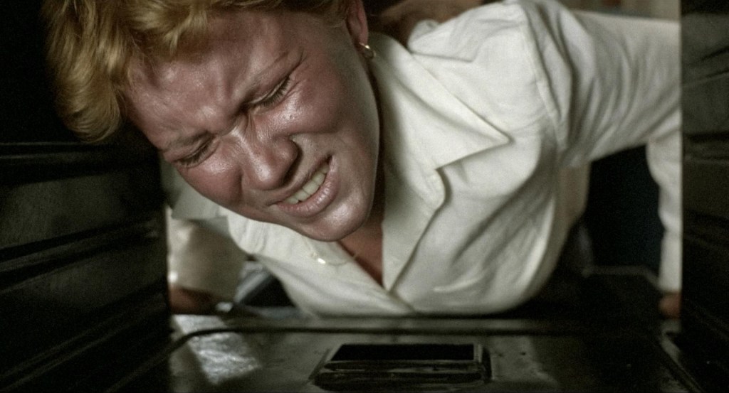 C’est d’ailleurs la force du film, de s’émanciper de la simple lame qui pullulait dans le giallo puis dans le slasher, pour créer une animalité redoutable où le tueur improvise, avec sauvagerie, ses actes en fonction de ce qu’il a sous la main : foreuse chirurgicale, four, hachoir et autres « merveilles ».