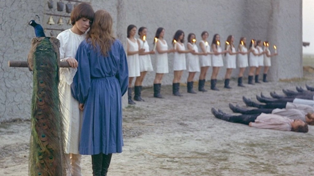 Dans un enchevêtrement de plans séquences, et de chorégraphies portées par des centaines de figurants, Jancso fait de l’épure des décors un grondement et des ondulations des corps un tremblement.