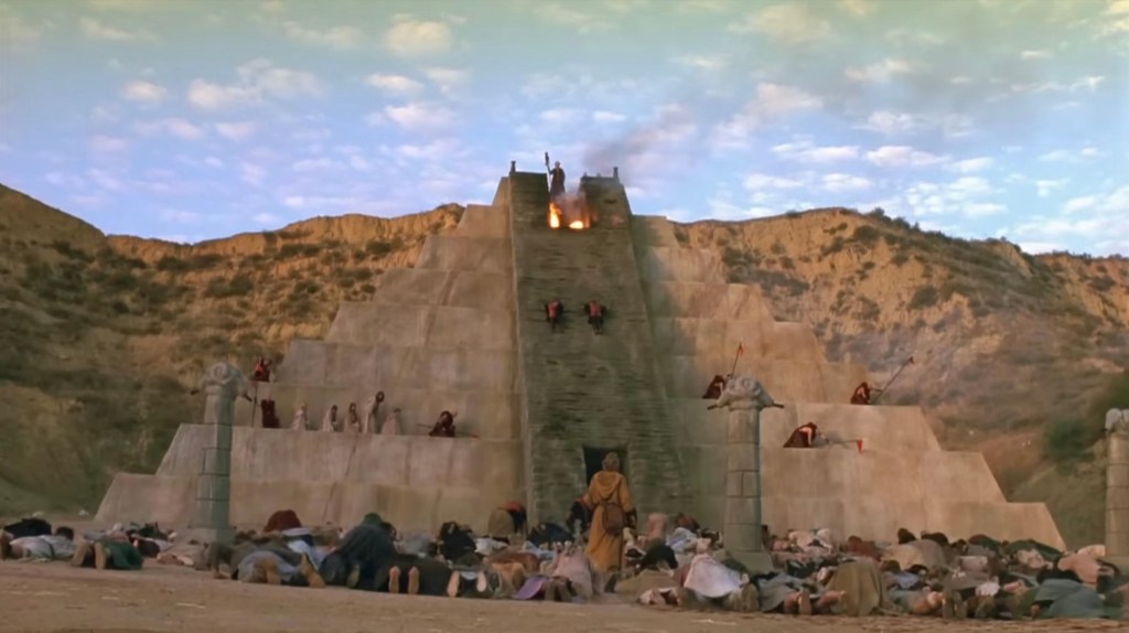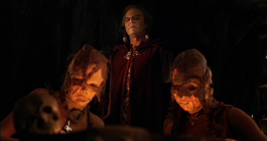 S’ajoute à cela, la dualité bien/mal ; la rencontre avec de nouveaux amis ; le sauvetage d’une esclave à la plastique de rêve nommée Kiri (comme le fromage), campée par Tanya Roberts, et dont Dar ferait bien son gouter (ce qu’il a d’ailleurs fait dans une scène coupée des plus sexy) ; l’ignorance de son appartenance à une lignée royale ; le combat contre les forces maléfiques en présence : j’ai nommé Maax, prêtre infanticide malveillant, dont les dents rayent la terre battue du sol de sa pyramide.